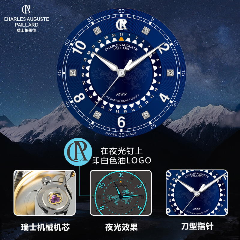 FunctionsSelf-winding mechanical movement beating at 28'800 vibrations per hour, with amonocrystalline siliconbalance-spring powerreserve up to 38 hours